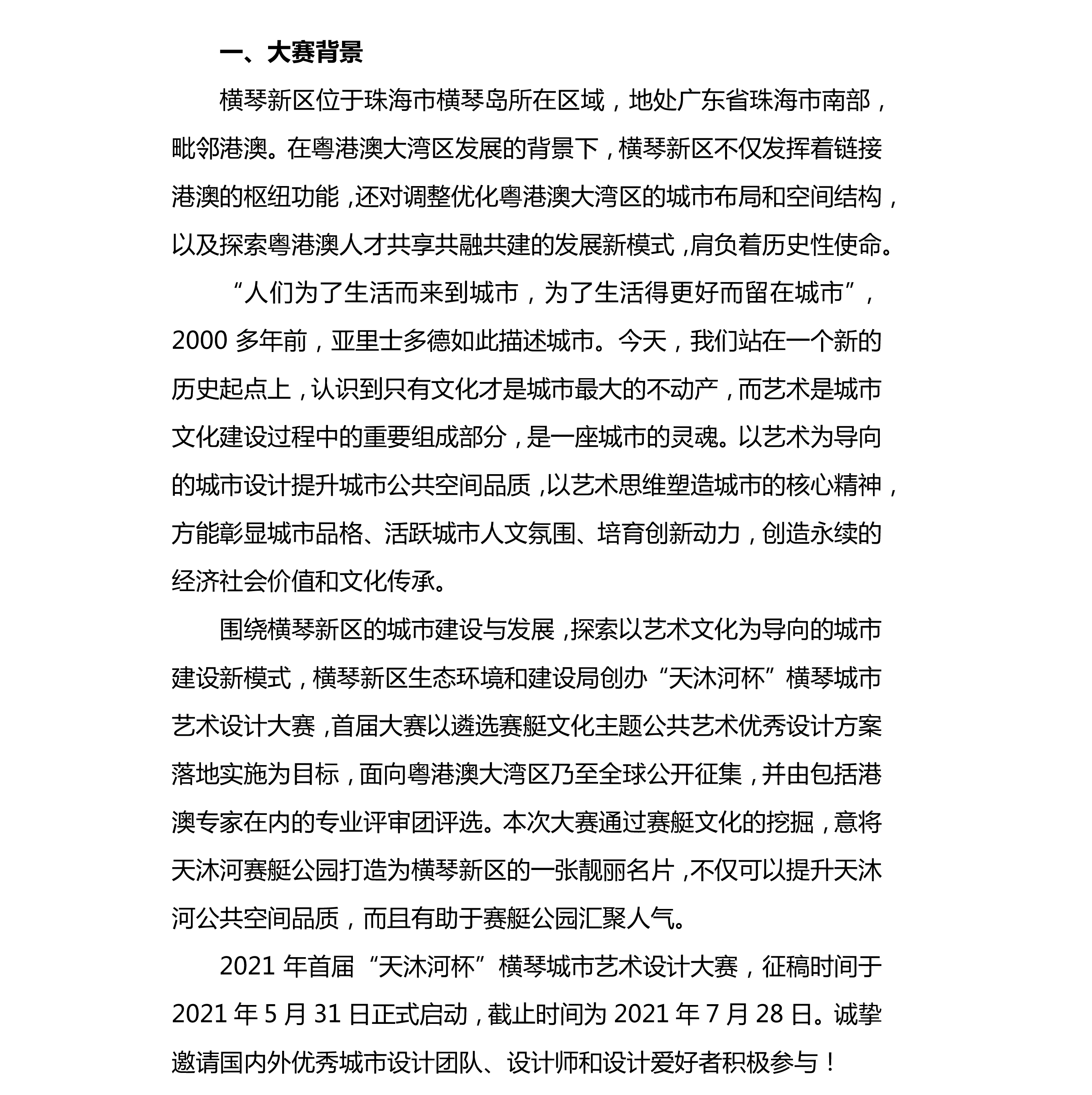 1. 2021“天沐河杯”横琴城市艺术设计大赛发布公告及任务书